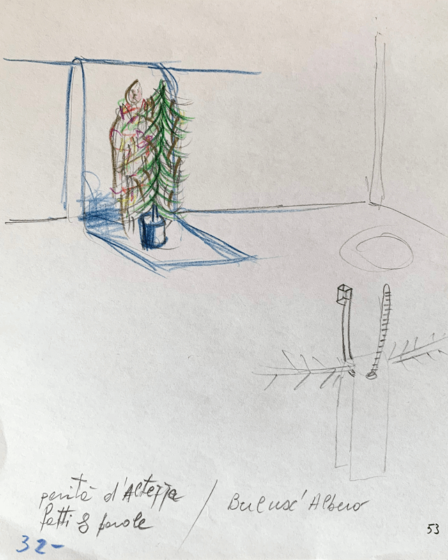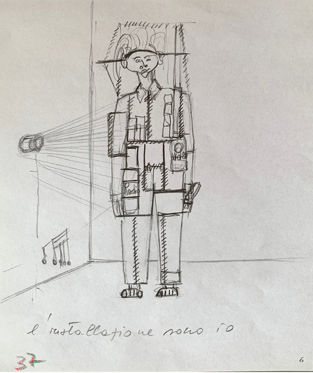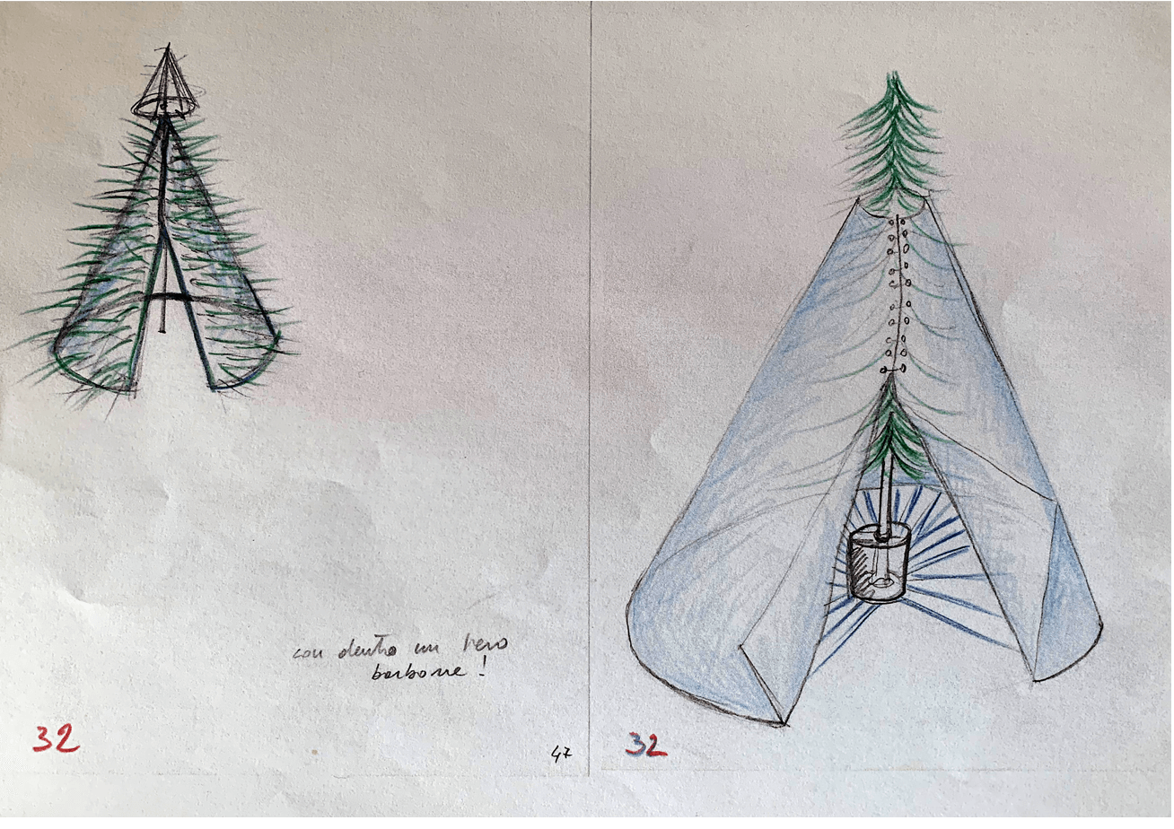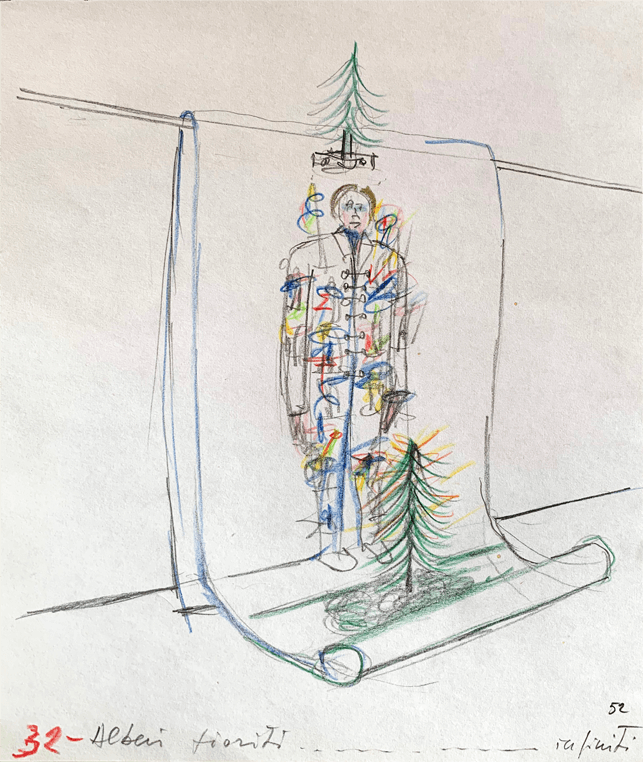 Un progetto inumano bello e pensabile… Nei disegnini, negli schizzi – C’è persino un Berlusconi albero – e così intanto si va avanti –