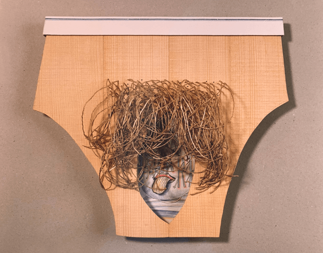 Questi foglietti 12-18 cm – Belli e facili da disegnar – Dentro rettangolari cornicette con vetro ad aspettar – che si compia il destino – Queste si prestano a diventare piccole sculture – La cariola diventa sesso femminile, l’uccello diventa “l’uccello vorrei!” Dice la donna: vieni son qua – L’uccello vengo – vorrei – La figa su cariola se n’va, ma prima una leccatina si fa – é il racconto della Nonna – è il racconto della Nonna –