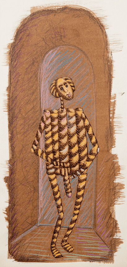 Questa tecnica che “toglie” dalla carta ha un sapore antico e tale doveva apparire la figurazione: