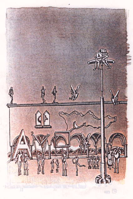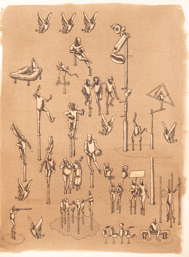 Con questa tecnica, oltre ai vari personaggi che si espongono sulle palafitte, viene voglia di provare la stampa di indumenti essenziali: pantaloni, mutande, canottiera, calze, simboli noti che cozzerebbero le persone.