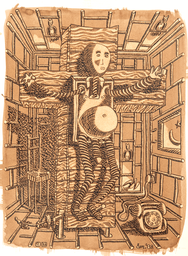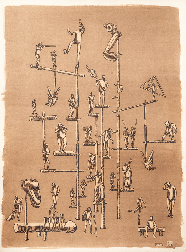 Passando agli umani, c’è pure il povero, l’operaio, chi protesta: scheletroni ma tutti personaggi, senza futuro – così la vita.