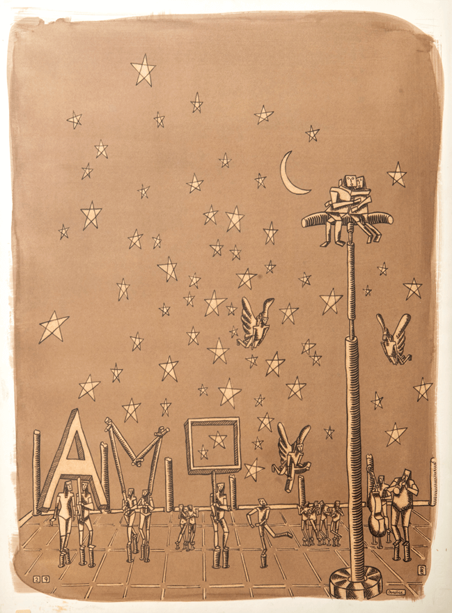 Ma a parte parte alcuni ritratti austeri oltre non si va, è meglio passare ai personaggi fantastici. Il povero cane va sempre con un povero astro nel cielo.