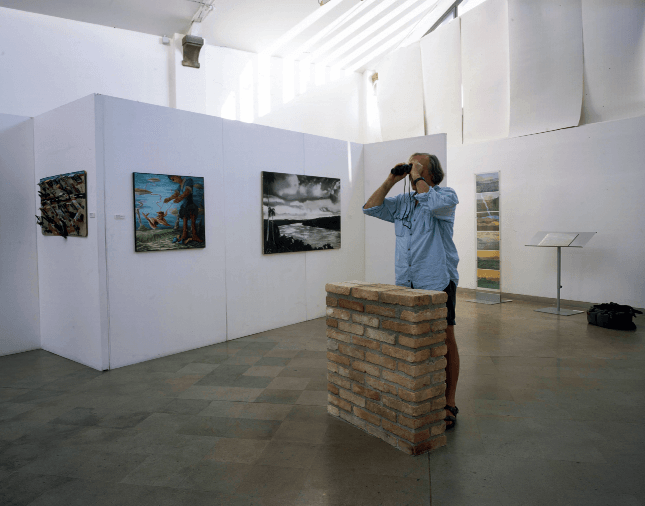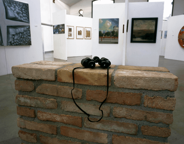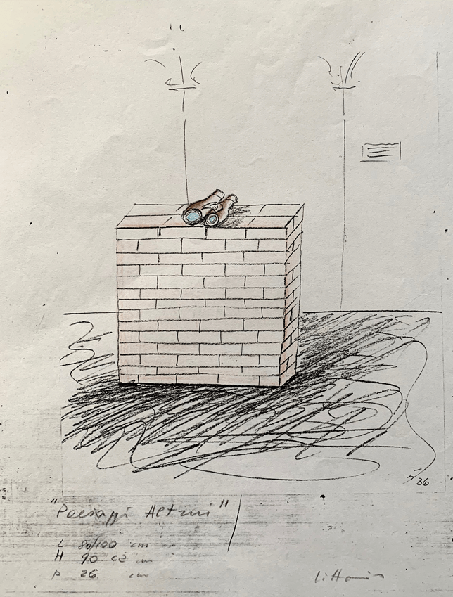 Anatomie del Paesaggio Dovendo corrispondere una scultura sul paesaggio, quale occasione migliore per osservare paesaggi reciproci e sentirsi tutti partecipi e responsabili.Il binocolo poteva sembrare un’offerta.