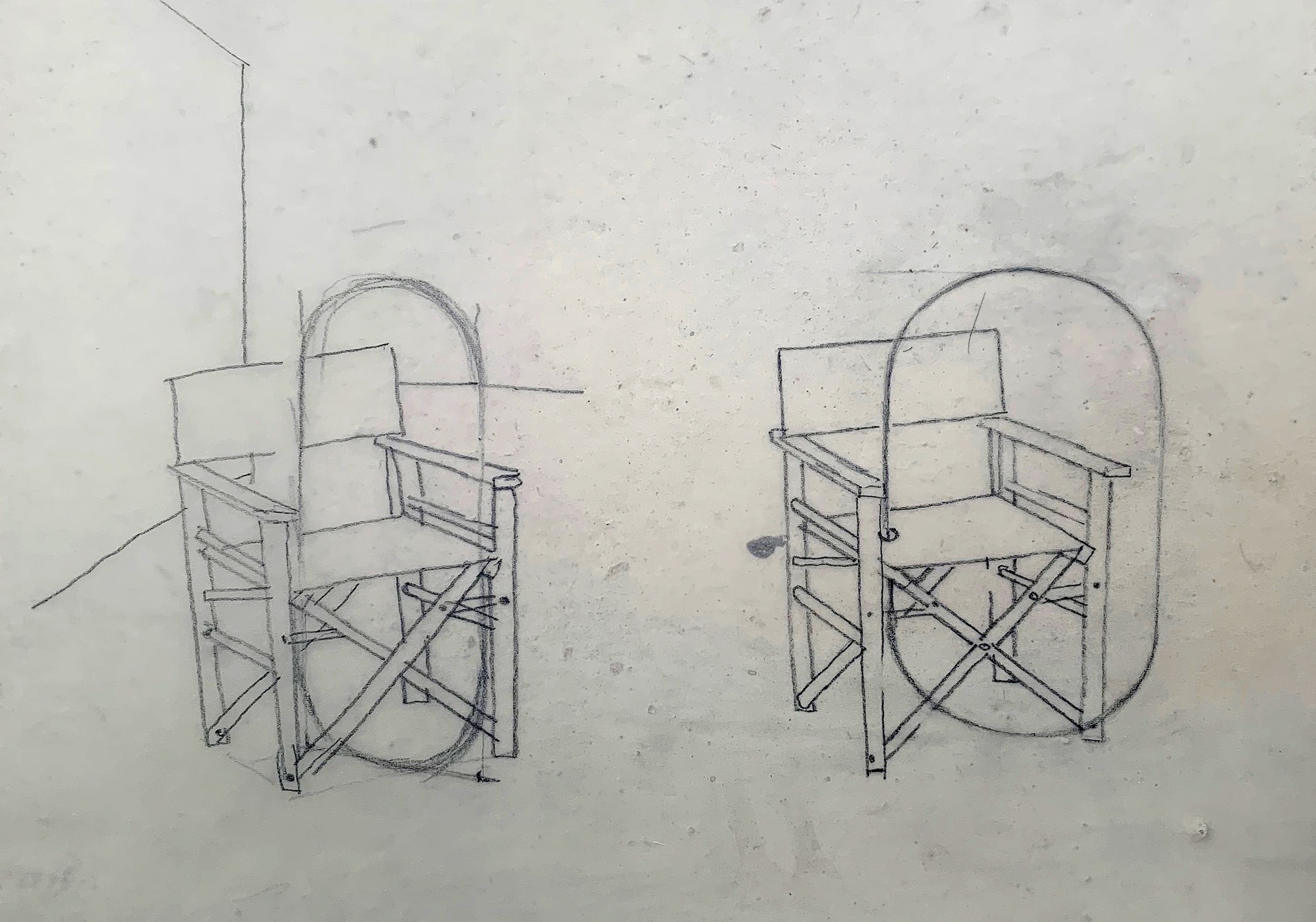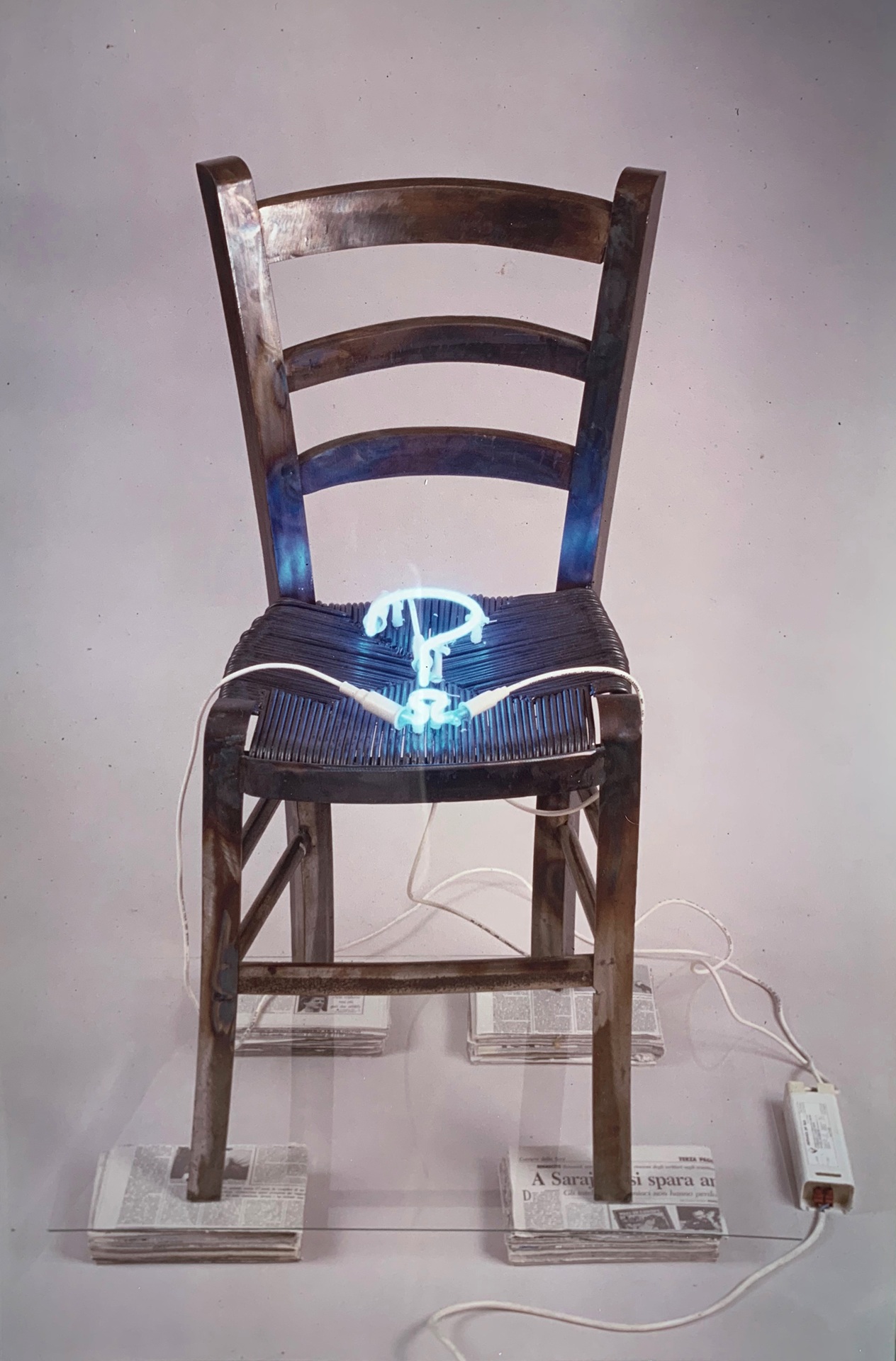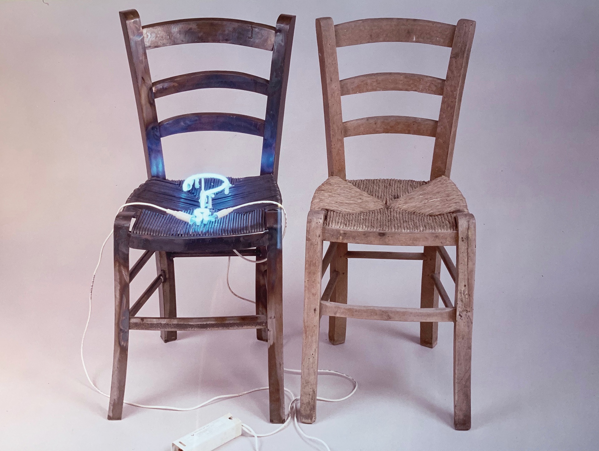 E poi quella sedia col punto interrogativo, addirittura luminoso – sembra un detective – Dai, comportiamoci bene, non si sa mai – Sembra ci sia una regia –